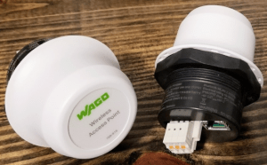 The WAGO 758-919 is a small, dual band 802.11 wireless access point that is also Bluetooth capable. It can function as a standard wireless access point/gateway, or as a wireless bridge and has an internal omni-directional antenna. It comes in a small form factor that is designed to be mounted on/through the side of a cabinet.