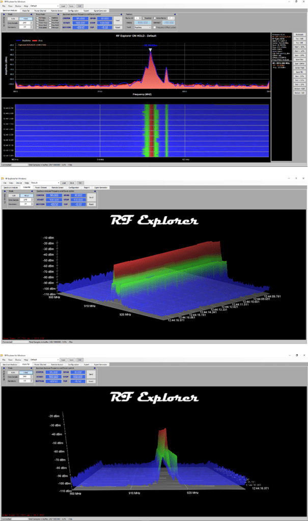 The RF Explorer software for your computer is free (I love that price) and has some nice display options for uploaded recordings or live viewings of a physically connected RF Explorer handheld device. Viewing options range from your standard density and waterfall graphs to several nice 3D representations of your recorded data.